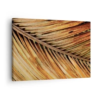 Cuadro sobre lienzo - Impresión de Imagen - Primer plano de una hoja de palma seca en tonos cálidos. - 70x50cm - Oro de coco - Decoración de pared moderna para salón y dormitorio ARTTOR