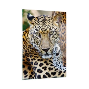 Cuadro sobre vidrio - Impresiones sobre Vidrio - Un leopardo salvaje descansando entre la vegetación. - 50x70cm - Salvaje y tranquilo - Decoración de pared moderna para salón y dormitorio ARTTOR