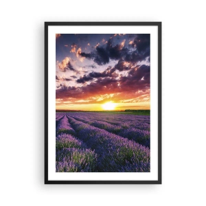 Póster en marco negro - Campo de lavanda al atardecer - 50x70cm - El mundo de la lavanda - Decoración de pared moderna para salón y dormitorio ARTTOR