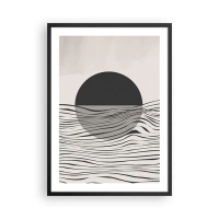 Póster en marco negro - Atardecer abstracto con líneas de ondas - 50x70cm - Media composición - Decoración de pared moderna para salón y dormitorio ARTTOR
