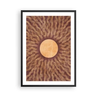 Póster en marco negro - Sol estilizado con rayos en tonos dorados y marrones. - 50x70cm - Icono del sol - Decoración de pared moderna para salón y dormitorio ARTTOR