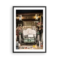 Póster en marco negro - Un coche antiguo en un garaje rodeado de herramientas. - 50x70cm - Volver al pasado - Decoración de pared moderna para salón y dormitorio ARTTOR