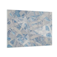 Cuadro sobre vidrio - Impresiones sobre Vidrio - Patrones geométricos en tonos grises y azules. - 70x50cm - En un laberinto gris azulado - Decoración de pared moderna para salón y dormitorio ARTTOR