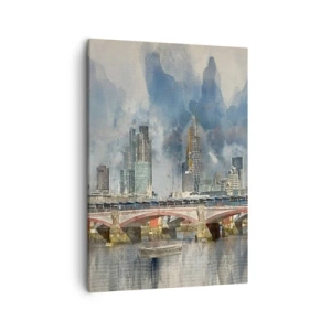 Cuadro sobre lienzo - Impresión de Imagen - Vista en acuarela del puente y el horizonte de la ciudad. - 50x70cm - Londres en todo su esplendor - Decoración de pared moderna para salón y dormitorio ARTTOR