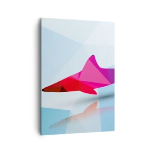 Cuadro sobre lienzo - Impresión de Imagen - Silueta geométrica de tiburón en tonos rosa y azul. - 50x70cm - Tiburón en espacio cristalino - Decoración de pared moderna para salón y dormitorio ARTTOR