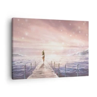 Cuadro sobre lienzo - Impresión de Imagen - Una mujer en un embarcadero en un entorno mágico de puesta de sol. - 70x50cm - A la luz de un sueño - Decoración de pared moderna para salón y dormitorio ARTTOR