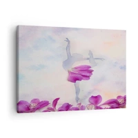 Cuadro sobre lienzo - Impresión de Imagen - Una bailarina con un vestido de pétalos de flores sobre un fondo pastel. - 70x50cm - Suave como una flor - Decoración de pared moderna para salón y dormitorio ARTTOR