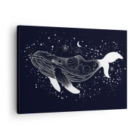 Cuadro sobre lienzo - Impresión de Imagen - Una ilustración gráfica de una ballena en estilo espacial. - 70x50cm - En el océano del universo - Decoración de pared moderna para salón y dormitorio ARTTOR