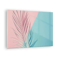 Cuadro sobre vidrio - Impresiones sobre Vidrio - Una hoja de palma sobre un fondo pastel en una composición geométrica. - 70x50cm - Impresión tropical - Decoración de pared moderna para salón y dormitorio ARTTOR