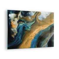Cuadro sobre vidrio - Impresiones sobre Vidrio - Un patrón abstracto en tonos turquesa y azul marino con acentos dorados. - 70x50cm - Pétalos de sol - Decoración de pared moderna para salón y dormitorio ARTTOR