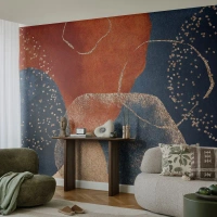 Fotomural Premium Sand - Manchas abstractas en azul marino y cobre con un toque dorado. - 100x70cm - La ligereza del ser - Decoración de pared moderna para salón y dormitorio ARTTOR