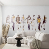 Fotomural Premium Sand - Ilustración de siluetas de modelos con atuendos elegantes. - 100x70cm - Elegancia casual - Decoración de pared moderna para salón y dormitorio ARTTOR