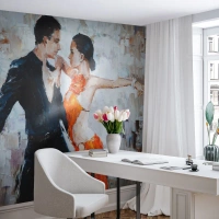 Fotomural Premium Sand - Una pareja de bailarines en un baile apasionado y lleno de emociones. - 100x70cm - Estilo Rudolf Valentino - Decoración de pared moderna para salón y dormitorio ARTTOR