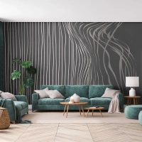 Fotomural Premium Sand - Una composición abstracta en tonos grises y dorados. - 100x70cm - Persistencia y movimiento - Decoración de pared moderna para salón y dormitorio ARTTOR
