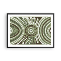 Póster en marco negro - Patrones abstractos en tonos verdes y marrones. - 70x50cm - Explosión de emociones - Decoración de pared moderna para salón y dormitorio ARTTOR