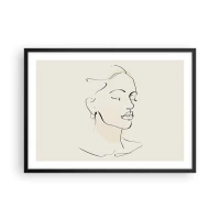 Póster en marco negro - Un boceto minimalista de una cara sobre un fondo claro. - 70x50cm - Contorno de un sueño - Decoración de pared moderna para salón y dormitorio ARTTOR