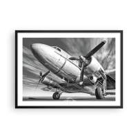 Póster en marco negro - Una imagen en blanco y negro de un avión clásico con detalles estructurales visibles. - 70x50cm - Siempre listo para volar - Decoración de pared moderna para salón y dormitorio ARTTOR
