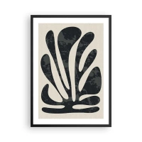 Póster en marco negro - Forma abstracta de planta negra sobre un fondo beige - 50x70cm - Abstracción con varios extremos - Decoración de pared moderna para salón y dormitorio ARTTOR