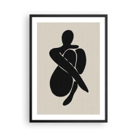 Póster en marco negro - Figura abstracta en pose con los brazos alrededor del cuerpo, ilustración en blanco y negro - 50x70cm - En mi propio abrazo - Decoración de pared moderna para salón y dormitorio ARTTOR