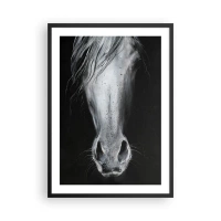 Póster en marco negro - Primer plano de la cara de un caballo en blanco y negro. - 50x70cm - Mirada seductora - Decoración de pared moderna para salón y dormitorio ARTTOR