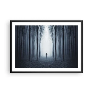 Póster en marco negro - Una figura caminando entre los árboles en un bosque brumoso. - 70x50cm - Alto y claro - Decoración de pared moderna para salón y dormitorio ARTTOR