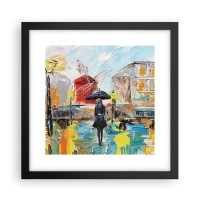 Póster en marco negro - Nueva York - también colorida bajo la lluvia - 30x30 cm