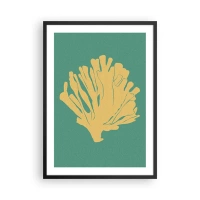 Póster en marco negro - Coral dorado sobre fondo turquesa - 50x70cm - Arbusto de un bosque submarino - Decoración de pared moderna para salón y dormitorio ARTTOR