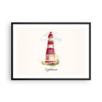 Póster en marco negro - Una pintura de acuarela de un faro sobre un fondo claro con una inscripción. - 70x50cm - Siempre observando - Decoración de pared moderna para salón y dormitorio ARTTOR