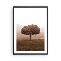 Póster en marco negro - Un árbol solitario en la niebla otoñal. - 50x70cm - Después de un verano ajetreado - Decoración de pared moderna para salón y dormitorio ARTTOR