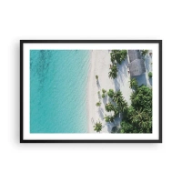 Póster en marco negro - Una vista de pájaro de una playa tropical con agua turquesa y palmeras. - 70x50cm - Vacaciones en el paraíso - Decoración de pared moderna para salón y dormitorio ARTTOR