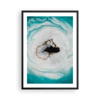 Póster en marco negro - Un motivo abstracto en tonos turquesa y blanco con un toque dorado. - 50x70cm - Para acceder al interior - Decoración de pared moderna para salón y dormitorio ARTTOR