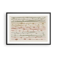 Póster en marco negro - Un patrón de líneas en tonos cálidos sobre un fondo claro. - 70x50cm - Composición de notas musicales - Decoración de pared moderna para salón y dormitorio ARTTOR
