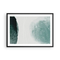 Póster en marco negro - Una delicada composición abstracta en tonos verdes con formas sutiles sobre un fondo claro. - 70x50cm - Un encuentro con la niebla - Decoración de pared moderna para salón y dormitorio ARTTOR