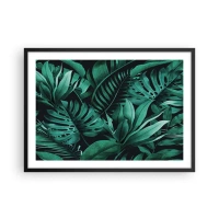 Póster en marco negro - Hojas tropicales en tonos de verde intenso. - 70x50cm - Profundidad del verde tropical - Decoración de pared moderna para salón y dormitorio ARTTOR