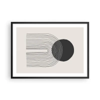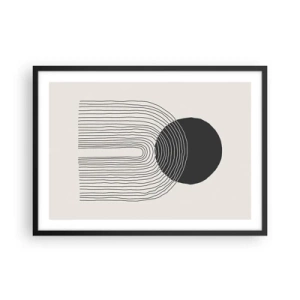 Póster en marco negro - Patrón abstracto con líneas y un círculo negro sobre un fondo claro - 70x50cm - Temblor y certeza - Decoración de pared moderna para salón y dormitorio ARTTOR