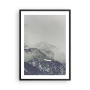 Póster en marco negro - Montañas brumosas con una atmósfera misteriosa. - 50x70cm - Valle de la niebla - Decoración de pared moderna para salón y dormitorio ARTTOR