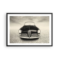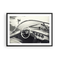 Póster en marco negro - Interior de coche clásico en estilo monocromático. - 70x50cm - Tiempo para los ricos - Decoración de pared moderna para salón y dormitorio ARTTOR