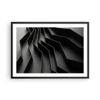 Póster en marco negro - Abstracción en blanco y negro con estructuras geométricas. - 70x50cm - Orden espacial - Decoración de pared moderna para salón y dormitorio ARTTOR