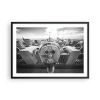 Póster en marco negro - Vista monocromática a través del telescopio del panorama de la ciudad. - 70x50cm - Sobre la ciudad - Decoración de pared moderna para salón y dormitorio ARTTOR