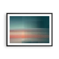 Póster en marco negro - Una puesta de sol en tonos pastel sobre un horizonte tranquilo. - 70x50cm - Abstracción: ondas de luz - Decoración de pared moderna para salón y dormitorio ARTTOR