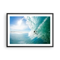Póster en marco negro - Un surfista montando una ola bajo la luz del sol contra un cielo azul. - 70x50cm - Siempre en la ola - Decoración de pared moderna para salón y dormitorio ARTTOR