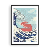 Póster en marco negro - Onda gráfica de inspiración japonesa con un sol rojo. - 50x70cm - De inspiración japonesa - Decoración de pared moderna para salón y dormitorio ARTTOR