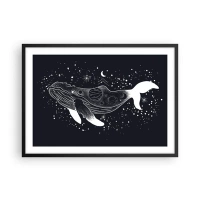 Póster en marco negro - Una ilustración gráfica de una ballena en estilo espacial. - 70x50cm - En el océano del universo - Decoración de pared moderna para salón y dormitorio ARTTOR