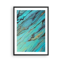 Póster en marco negro - Patrones abstractos en tonos turquesa y dorado. - 50x70cm - Marea turquesa - Decoración de pared moderna para salón y dormitorio ARTTOR