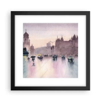 Póster en marco negro - En una niebla lluviosa - 30x30 cm
