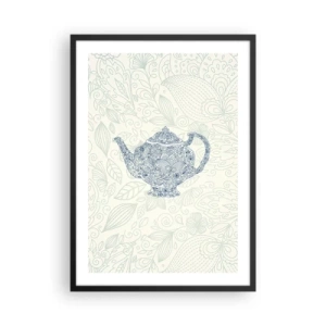 Póster en marco negro - Una ilustración decorativa de una tetera con un patrón sutil sobre un fondo claro. - 50x70cm - El encanto del té - Decoración de pared moderna para salón y dormitorio ARTTOR