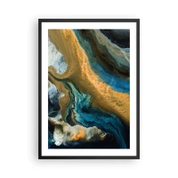 Póster en marco negro - Una composición abstracta en tonos dorados y azules. - 50x70cm - Azul - amarillo - influencia mutua - Decoración de pared moderna para salón y dormitorio ARTTOR