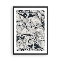 Póster en marco negro - Composición abstracta con textura en blanco y negro - 50x70cm - La interpenetración de los opuestos - Decoración de pared moderna para salón y dormitorio ARTTOR