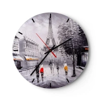 Reloj de pared - Reloj de vidrio - Una calle de París con la Torre Eiffel al fondo - 30x30cm - Un paseo parisino - Decoración de pared moderna para salón, cocina y dormitorio ARTTOR