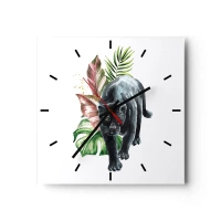 Reloj de pared - Reloj de vidrio - Pantera negra rodeada de hojas tropicales - 30x30cm - Salvaje de corazón - Decoración de pared moderna para salón y dormitorio ARTTOR